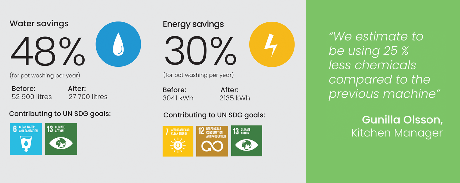 Projection to save even more, as they are no longer using the rack conveyor dishwasher during school holidays and on days with fewer guests.